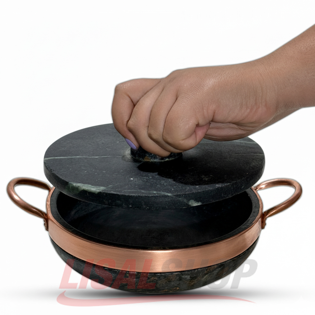 Leve o sabor da tradição para a sua mesa. Esta frigideira, esculpida em pedra-sabão autêntica, é ideal para quem busca realçar o sabor natural dos alimentos. Graças à sua alta inércia térmica, ela distribui o calor de forma uniforme e mantém a comida quente por muito mais tempo, mesmo após sair do fogo. Acompanha tampa de pedra que retém a umidade, garantindo carnes suculentas e vegetais perfeitos.